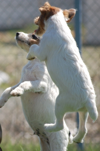 Im sensiblen Alter von 8 Wochen bis ca. 24 Wochen ist äußert wichtig, das der Hund Kontakt mit Gleichaltrigen bekommt. Nur so lernt er soziales Verhalten gegenüber anderen Hunden und Menschen.