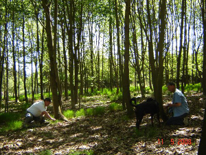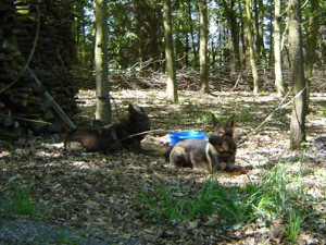 Am Samstag, dem 28.05.2011 war wie angekündigt das Welpentreffen der Plotthounds auf dem Gelände der Hubertusmeute. Wir trafen uns bei herrlichstem Wetter und natürlich denkbar guter Laune. Die Teilnahme war zwar nicht so berauschend, aber was soll's wir sind ja flexibel und es konnte der ganzen Sache keinen Abbruch tun. Zum Anfang fiel mir auf, dass es mit der Leinenführigkeit nicht zum Besten stand. Ich erklärte Allen, dass die Hunde spätestens zur Prüfung locker ohne zu ziehen an der Leine gehen müssen. Denn wie soll sonst ein Hund in seiner Form beurteilt werden? So begannen wir den Tag mit etwas Training, was dieses Problem betraf. Es war für alle beeindruckend zu sehen, dass sich schon nach einer kurzen Zeit eine deutliche Besserung zeigte. Die Hundeführer waren froh, für diese nicht so leicht zu knackende Hürde ein paar Tipps zu bekommen, ohne auf die noch relativ jungen Hunde zu hohen negativen Druck auszuüben. Danach durften die Hunde auf dem eingezäunten Platz frei spielen, was sie sichtlich genossen. Schnell war es Mittag. Zeit für eine deftige Stärkung, natürlich Thüringer Bratwürste...Echte!!! und Rostbrätl. Auch an Getränken aller Art mangelte es nicht. Sehr zu Aller Freude traf jetzt auch noch ein Plottführer mit Familie ein. Der Hund hatte das 1. Jahr schon vollendet und kam nicht aus unserem Zwinger. Aber genau das war ja unsere Idee. Durch solche Aktionen das Vereinsleben zu bereichern. Nach der Mittagspause rüsteten wir uns, um im Revier eine Jusi mit allem Drum und Dran durchzuspielen. Alle Hunde zeigten Interesse an der sich bewegenden Sau (Schwarte mit Haupt). Die Reaktion auf Schuß und Sau reichte vom Fassen, über Verbellen, bis zum Ignorieren. So weiß jetzt jeder Hundeführer wie sein Hund auf diese Situation reagiert. Nachdem alle wieder in der Zwingeranlage angekommen waren folgte eine Auswertung des Erlebten. Ein informativer, lehrreicher und somit gelungener Tag war die einhellige Meinung. Mit tollen Erlebnissen und Aufgaben im Gepäck (...dran bleiben, Ihr wisst jetzt vorauf es ankommt!) fuhren Alle in ihre nah oder fern gelegenen Reviere.